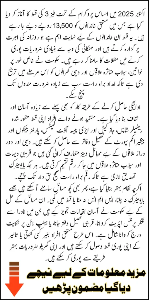 Also Read: BISP Phase 3 October 2025 Installment 13500 Payment Start And New Payment Methods Explained
