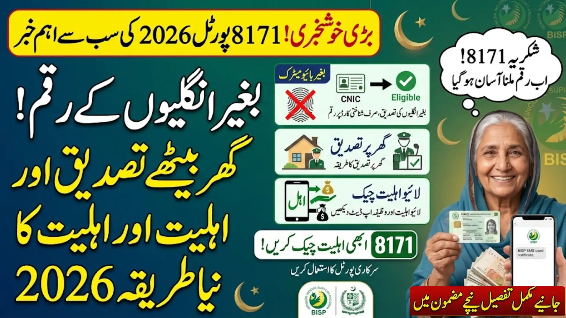 The 8171 portal provides a simple and reliable way to check your eligibility and payment status online from home. Instead of visiting offices or waiting for SMS replies, beneficiaries can directly verify their status through the official website 8171.bisp.gov.pk. Before starting the process, make sure you have a stable internet connection and your 13-digit CNIC number ready.
