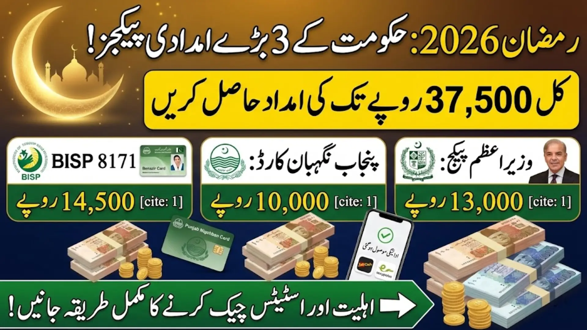 - PM Shahbaz Sharif Ramzan Package: Rs. 13,000 transferred directly to eligible beneficiaries