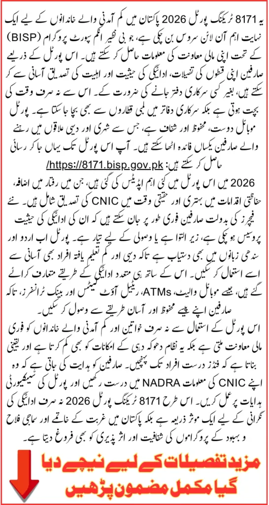 The 8171 Tracking Portal 2026 has revolutionized the way BISP beneficiaries check payments and track eligibility. With real-time CNIC verification, multiple secure payment methods, and a mobile-friendly interface, the portal ensures efficiency, transparency, and convenience.