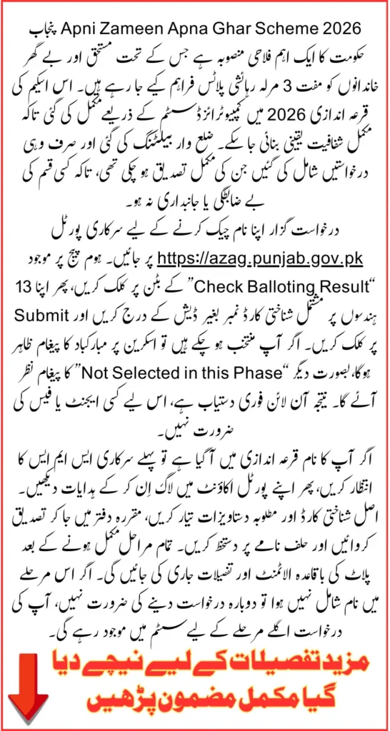 Staying connected with the official portal and helpline ensures that applicants receive timely updates. Following the instructions carefully will help ensure a smooth process from selection to final plot allocation. The AZAG scheme remains one of the most transparent and inclusive housing initiatives in Punjab.