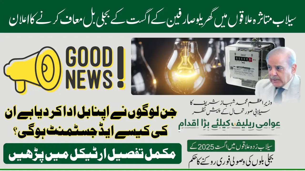 While addressing the nation and meeting with officials, Prime Minister Shehbaz Sharif announced that all domestic electricity consumers in flood-affected areas will not be required to pay their August 2025 bills.