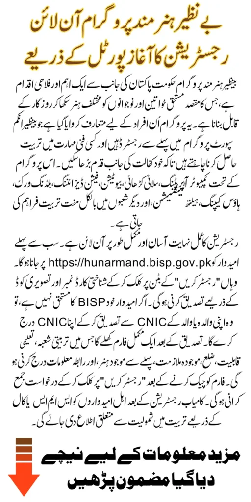 Benazir Hunarmand Program Online Registration: The Benazir Income Support Program has started a special Hunarmand Program to help deserving people learn useful skills and get vocational training. The main purpose of this program is to support poor families by giving them training that can help them find jobs or start small businesses. Only those who are already registered in BISP can apply for this free training through an online portal.