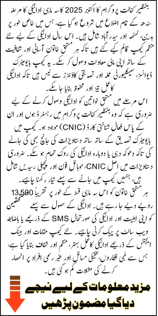 The latest update for October 2025 represents a significant step toward modernizing the Benazir Kafalat Program. By transitioning from temporary setups to authorized camps and banking agents, the program ensures safer and faster access to financial support.