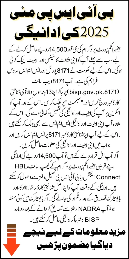 The 14,500 BISP payment is only available to eligible families based on their socio-economic conditions. Eligibility is determined through data collected via NSER surveys and dynamic updates.