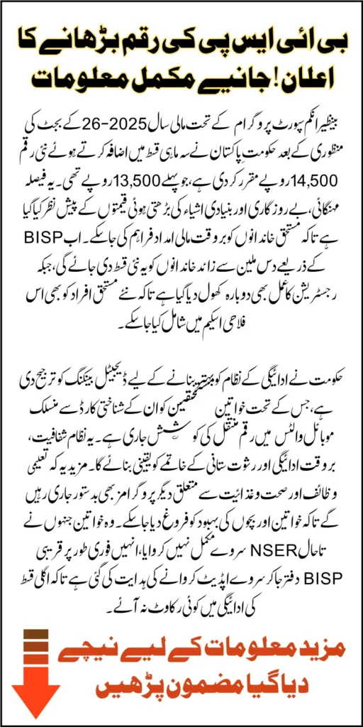 This article presents a complete overview of the newly released notification, payment increase, updated eligibility status, and the steps beneficiaries must follow to receive the new 14,500 installment under the BISP 8171 initiative.