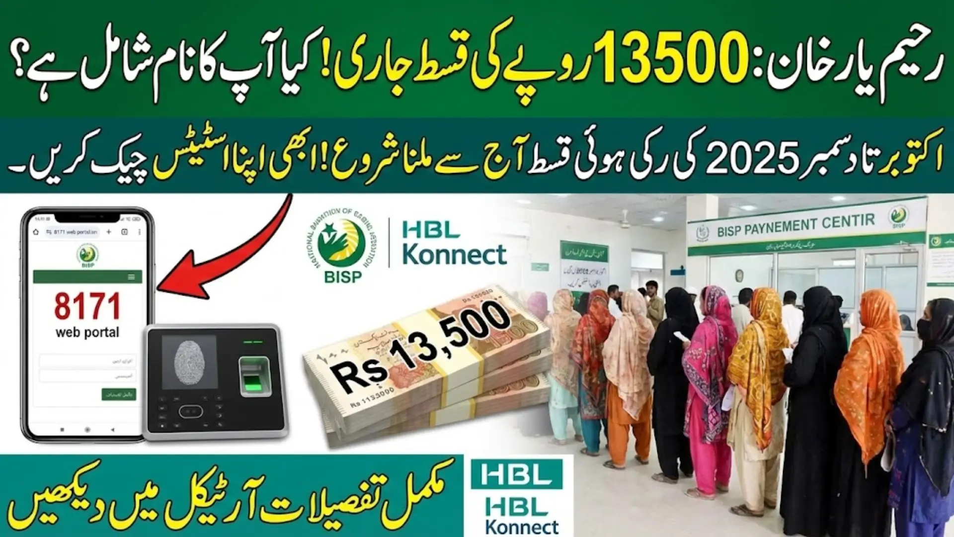 BISP 8171 Begins Rs. 13500 Quarterly Installment Of October–December: The Benazir Income Support Programme has officially started disbursing the delayed October–December 2025 installment of Rs. 13,500 to 339,000 eligible women in Rahim Yar Khan. This long-awaited payment, which was originally scheduled for earlier release, is now available from today, offering significant financial relief to families in need. The increased installment helps low-income households cope with rising costs and ensures social protection for women in the district.
