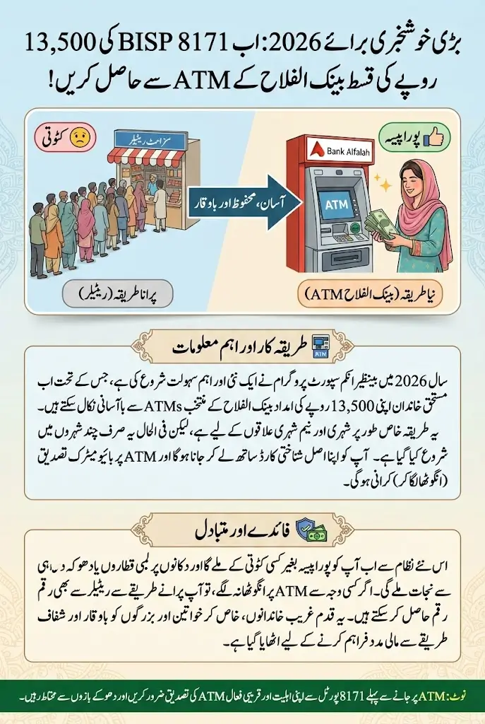 The launch of Rs. 13,500 BISP 8171 payments through Bank Alfalah ATMs in 2026 is a positive and practical step. It addresses long-standing complaints related to deductions, overcrowding, and delays.