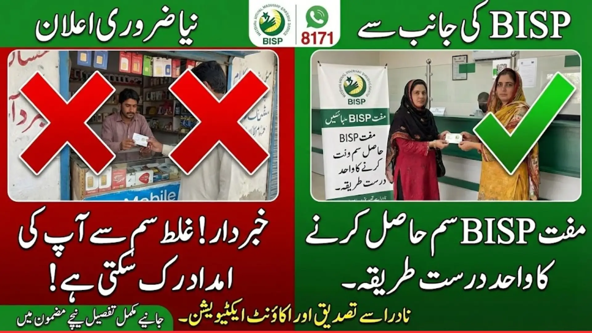 ⚠️ اہم نوٹ: سم اور اکاؤنٹ صرف سرکاری BISP نمائندے کے ذریعے ہی حاصل کریں!