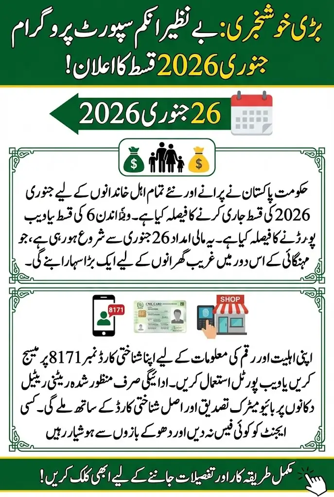 Payments will officially begin from 26 January 2026 across Pakistan.