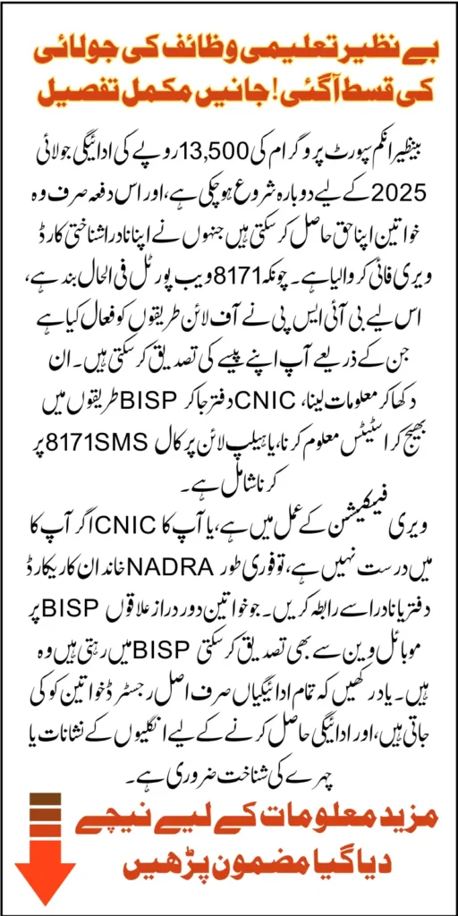 BISP 8171 July 2025 Payment Verification 13500