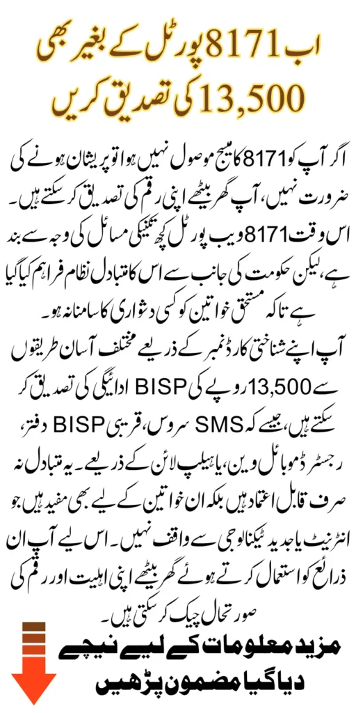 For such individuals, the government has introduced other methods to verify payment and eligibility details without relying on the web portal. These methods are offline, SMS-based, or through direct contact, making them useful for a large portion of BISP recipients.