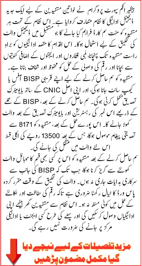 After receiving the confirmation message, your account will be approved, and future BISP payments, including the 13500 installment, will be transferred directly to your digital wallet. Remember to set a secure password during the wallet activation process to safely withdraw funds.