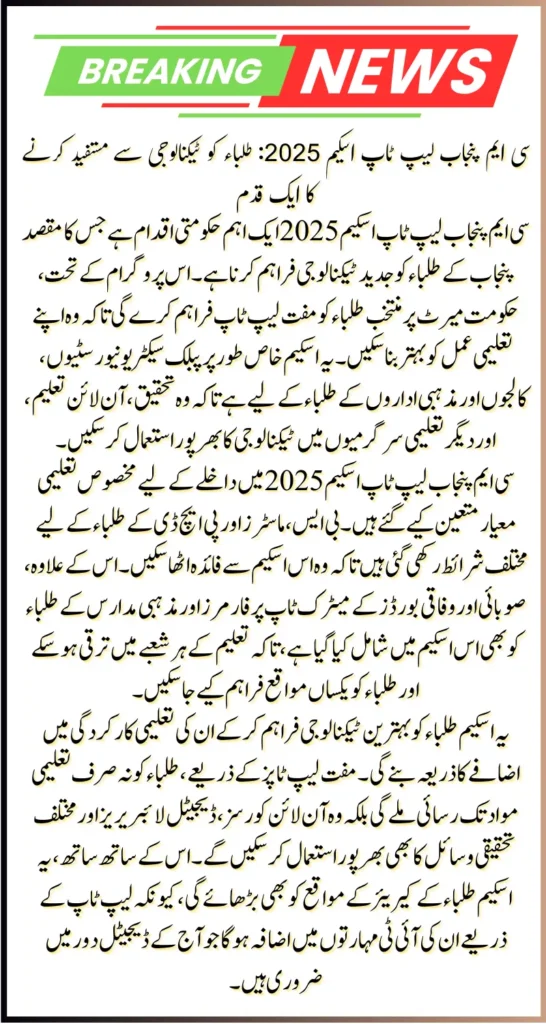 CM laptop Hed Punjab Gov PK Whether you are an undergraduate, graduate, or postgraduate student, the CM Punjab Laptop Scheme can help you enhance your academic journey and better prepare for your future career. Make sure to check the eligibility criteria, apply on time, and take full advantage of this fantastic opportunity.