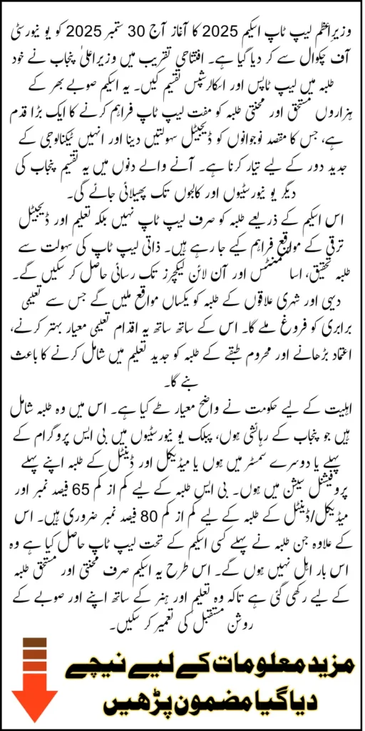 From today onwards, the distribution will gradually expand to universities and colleges in other districts of Punjab. The scheme is designed to empower youth with digital tools, promote equal opportunities in education, and prepare students for the modern technological era. If you are a student in Punjab, this is your chance to check your eligibility and secure a free laptop through this program.
