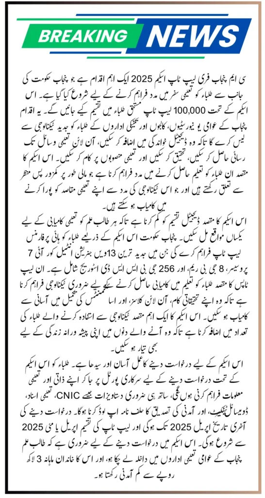 You Can Also Read: CM Punjab Laptop Scheme Eligibility Criteria 2025