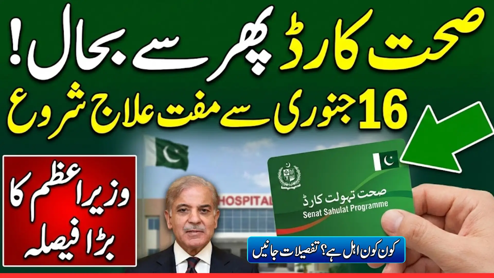 The federal government has announced the restoration of the Sehat Sahulat Health Card facility for millions of residents across Pakistan. This initiative will resume from January 16, benefiting over 10 million families in Islamabad, Azad Jammu and Kashmir, KPK, Gilgit-Baltistan, and Punjab. The restoration comes after a temporary suspension of the program in March 2024 due to unpaid dues, which had left many families without access to free healthcare services. The Prime Minister has given clear instructions to ensure uninterrupted operations of the program in the affected regions.