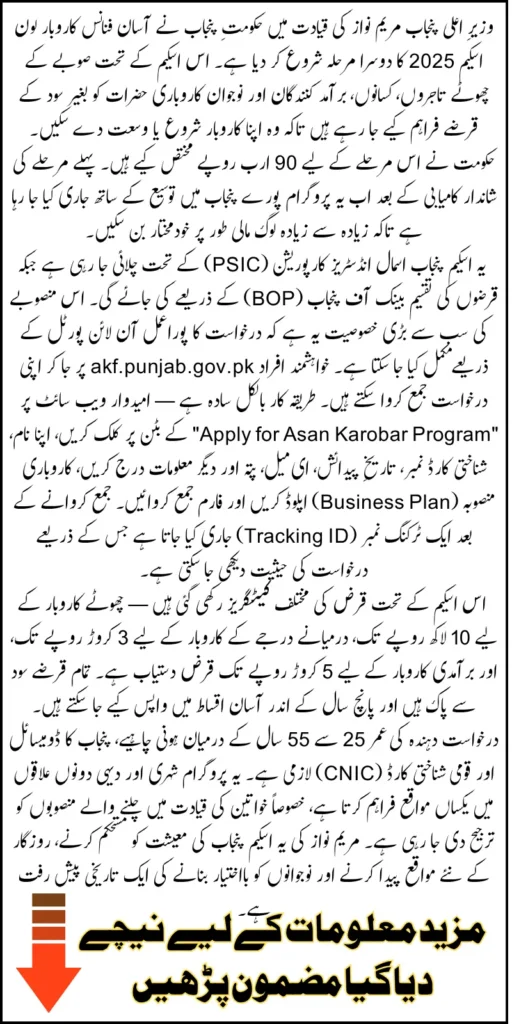 Maryam Nawaz Asan Finance Karobar Loan Scheme 2025