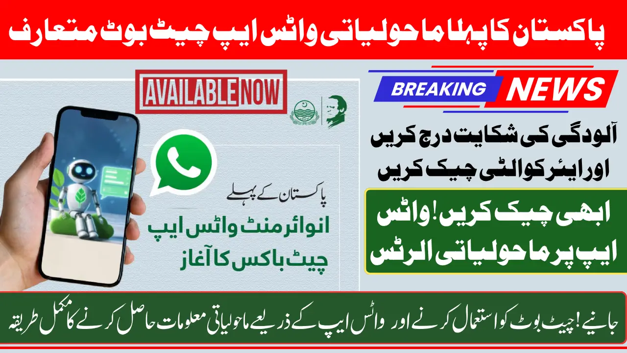 Pakistan’s First Environment WhatsApp Chat Bot: Pakistan has stepped into a new era of digital environmental awareness with the official launch of its first Environment WhatsApp Chat Bot in 2025. Developed by the Government of Punjab’s Environment Department, this initiative allows citizens to instantly access environmental data, air quality updates, and health safety tips. By simply sending a message to 0304-1373000, users can receive real-time information and even file complaints about pollution, waste management, or cleanliness issues in their area.