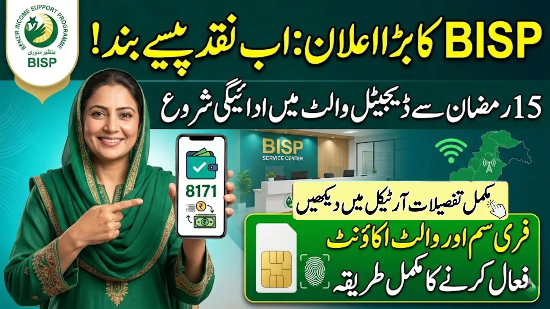 Under the new system, once payment is issued, the amount will be transferred directly into the beneficiary’s digital wallet account linked to their registered SIM. Beneficiaries will receive an official message from 8171 on the mobile SIM provided by BISP.