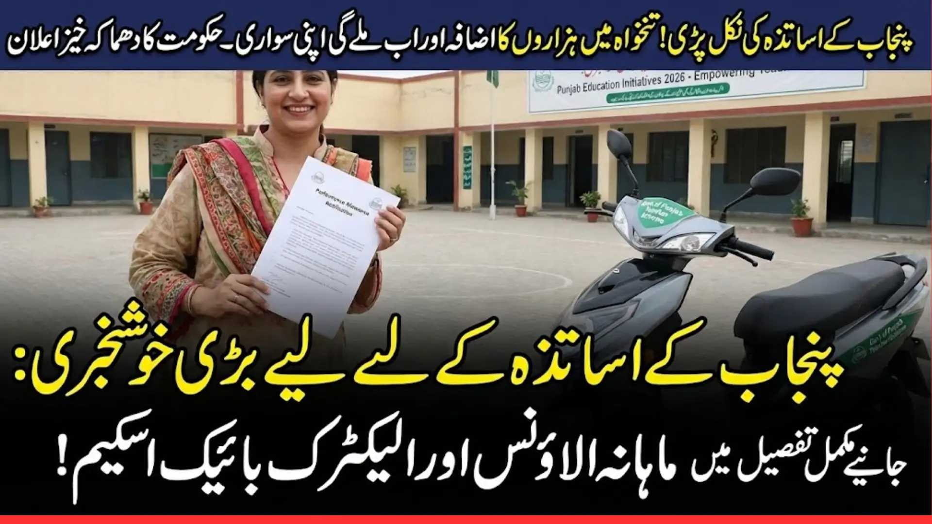 Performance-Based Allowance And Electric Bikes Scheme: The Punjab government has introduced two significant initiatives for school teachers in 2026 aimed at improving education standards and supporting educators’ welfare. The first initiative is a performance-based allowance for teachers across all school levels, while the second is a new electric bike scheme to provide safe and convenient transport for teachers. The allowance details have been reported by ProPakistani.pk, and information about the bike scheme has been shared via City42.tv. These programs reflect the government’s commitment to enhancing teacher motivation, improving learning outcomes, and addressing practical challenges faced by educators.