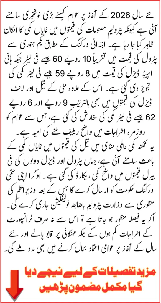 This expected reduction is based on early working completed for the next 15-day pricing cycle. Sources indicate that falling global oil prices have created space for the government to consider lowering fuel rates. If approved, this decision could positively impact transportation costs, inflation, and overall economic sentiment at the start of the new year.