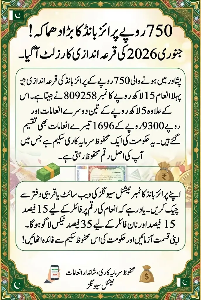 The January 2026 Rs. 750 prize bond draw has once again highlighted the popularity and reliability of prize bonds in Pakistan. With the first prize of Rs. 1.5 million awarded to bond number 809258 and multiple second and third prizes distributed, investors have ample reasons to participate in future draws.