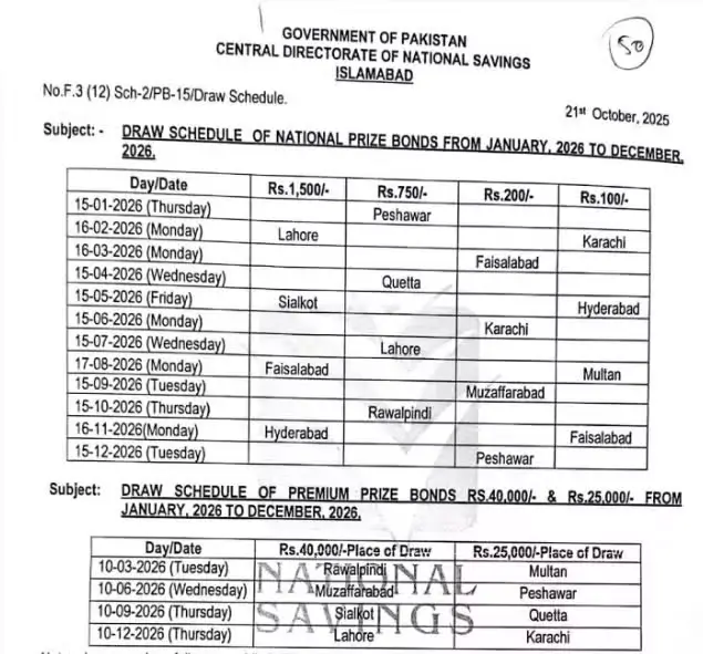 The Government of Pakistan has released a complete schedule for all prize bond draws in 2026. Participants can plan their investments and track draw dates accordingly.