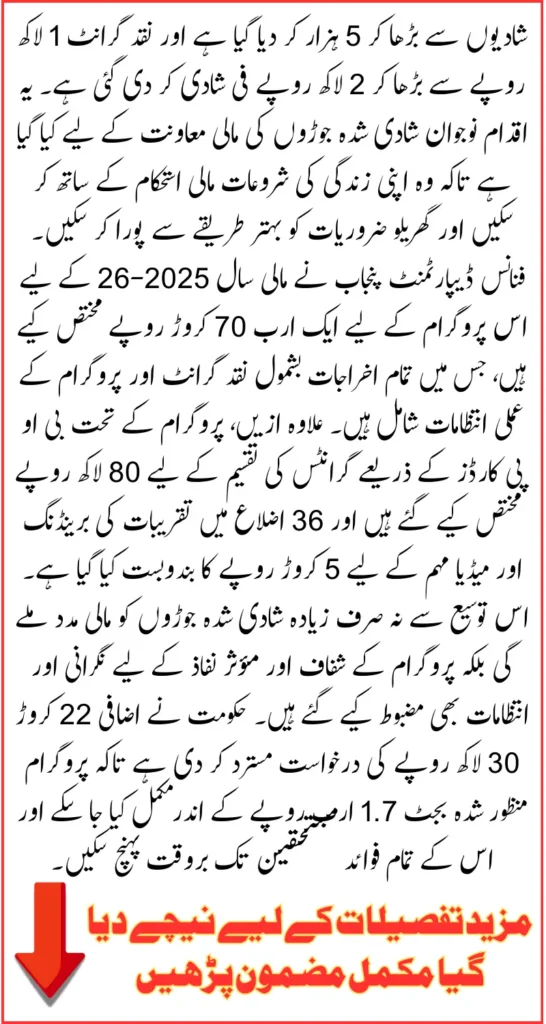 Through this structured implementation, the program aims to deliver benefits efficiently to newlywed couples across Punjab.