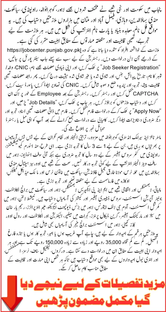 Job seekers across Punjab are encouraged to apply through the official Punjab Job Center portal. The portal offers a structured method to register, search, and apply for jobs. In this article, we will provide complete details about available positions, eligibility, salary packages, and a step-by-step online application method for 2025.