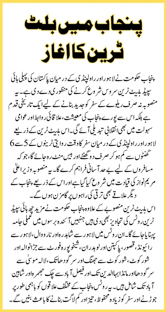 The approval of the Lahore–Rawalpindi bullet train project marks a bold and transformative step toward a more connected and progressive Punjab. By embracing innovation and modern transportation solutions, the government is not only addressing today’s needs but also paving the way for a brighter, faster, and more sustainable future.
