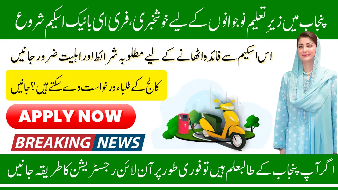 E-Bikes Scheme: The Punjab CM Free E-Bike Scheme 2025 is a groundbreaking initiative launched by Chief Minister Maryam Nawaz Sharif to ease the transportation challenges faced by students across Punjab. As the cost of public transport rises and environmental concerns grow, the government’s electric bike initiative serves a dual purpose, empowering youth through mobility and promoting eco-friendly practices.