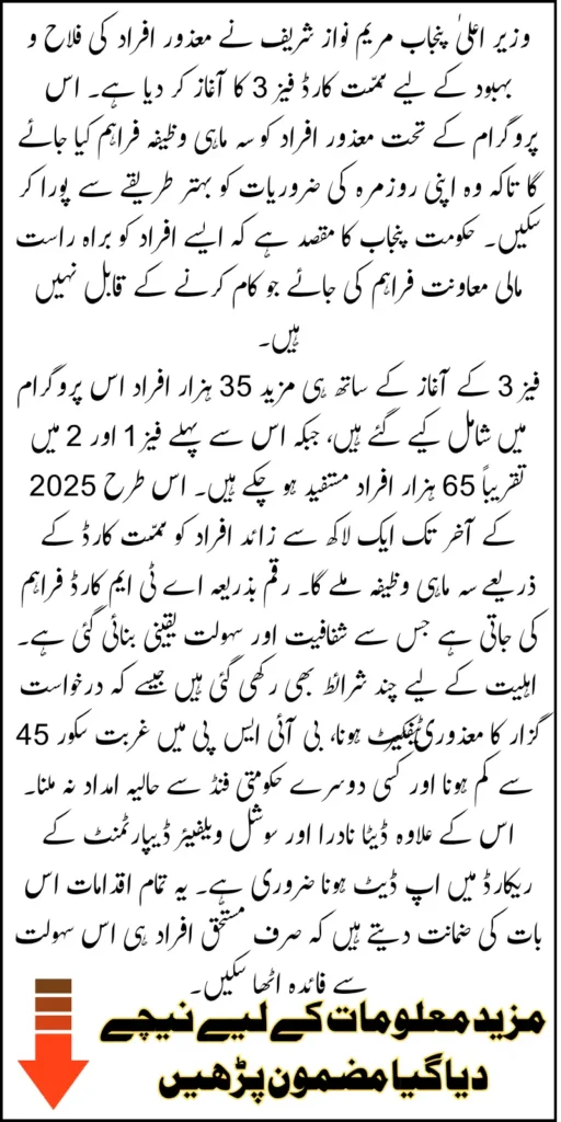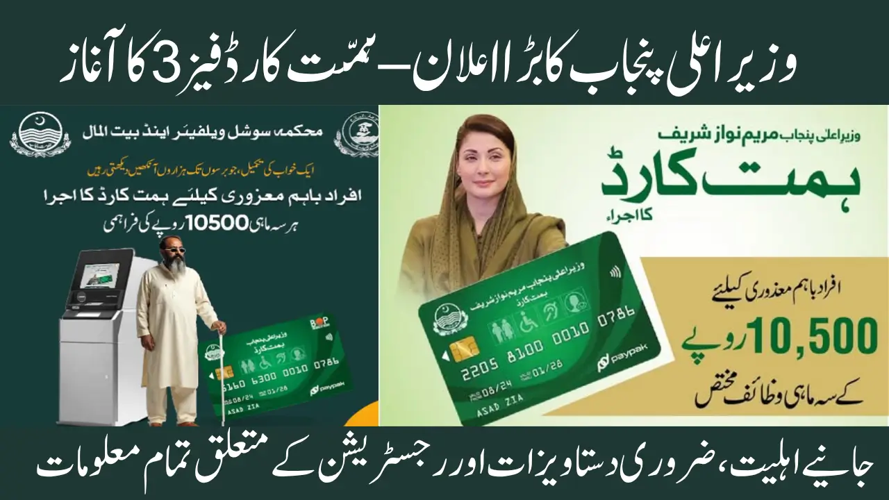 CM Punjab Himmat Card Phase 3: The Punjab government has officially launched the third phase of the Himmat Card program in 2025, marking another important step toward social protection for persons with disabilities. Chief Minister Maryam Nawaz Sharif introduced this initiative to ensure that differently-abled individuals receive steady financial aid through a fair and transparent process. This program is designed to reduce economic struggles and promote equality for those who cannot work due to their disabilities.