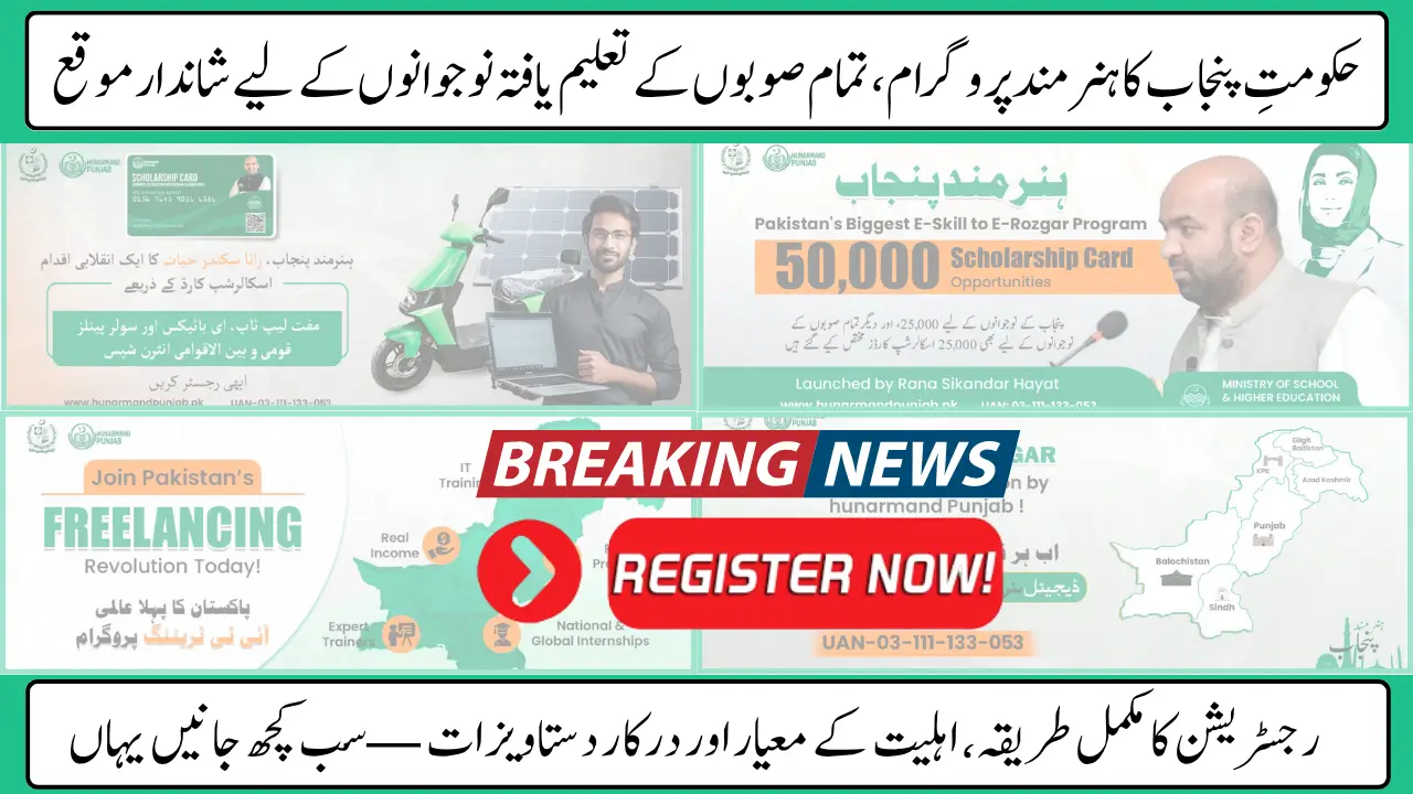 Punjab Hunarmand Program 2025: The Government of Punjab has launched the Hunarmand Punjab Program 2025, a transformative skills development initiative aimed at empowering youth through technical training and educational support. The program integrates modern courses with financial aid benefits including free laptops, solar energy solutions, Taleem Finance, scholarships for studying abroad, and advanced course enrollments.
