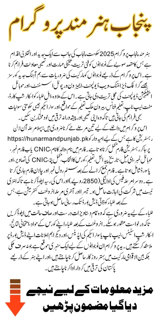 The Hunarmand Punjab Program 2025 is a significant opportunity for young individuals seeking to enhance their career prospects in both domestic and international markets. From technical training to financial support and international scholarships, the initiative represents a comprehensive development model.