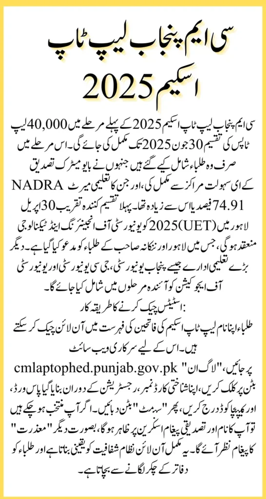In this detailed article, we cover everything you need to know about the Punjab Laptop Scheme 2025 distribution date, winner list, verification process, eligibility criteria, required documents, and venue details for the first distribution ceremony on April 30, 2025.