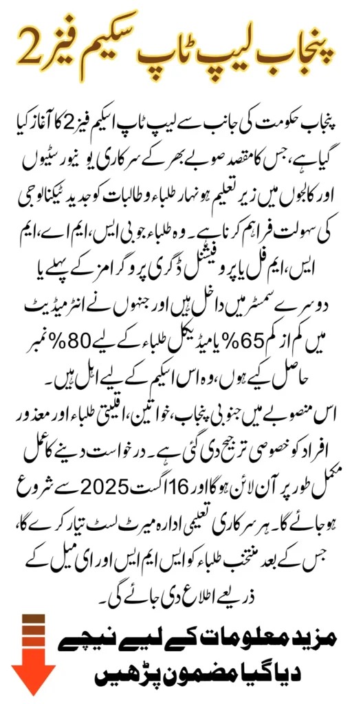 The eligibility for Phase 2 remains focused on merit-based and need-based students across Punjab. However, this time, additional categories are also being considered.