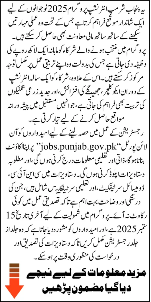 The last date to register for the Punjab Shrimp Internship Program 2025 is 15th September 2025. Applications submitted after this date will not be considered.