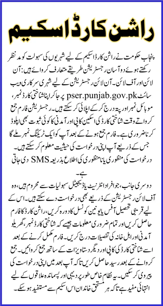 The Punjab Rashan Card 2025 is a major relief package for poor families facing inflation. With a monthly allowance of 10,000, this card helps households meet their food requirements in a respectful and organized manner. Whether you apply online or offline, make sure your documents are complete, and your PSER survey is done. Stay updated through the official portal and collect your card when notified to start availing of this incredible support from the Punjab government.