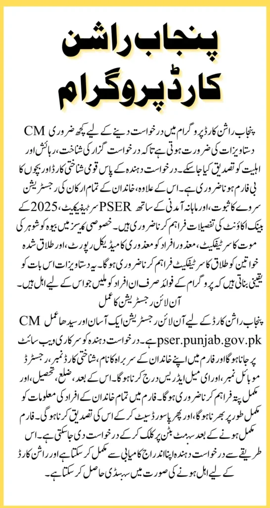 The registration process for the CM Punjab Rashan Card and Punjab Rashan Card Program is designed to be simple and efficient.