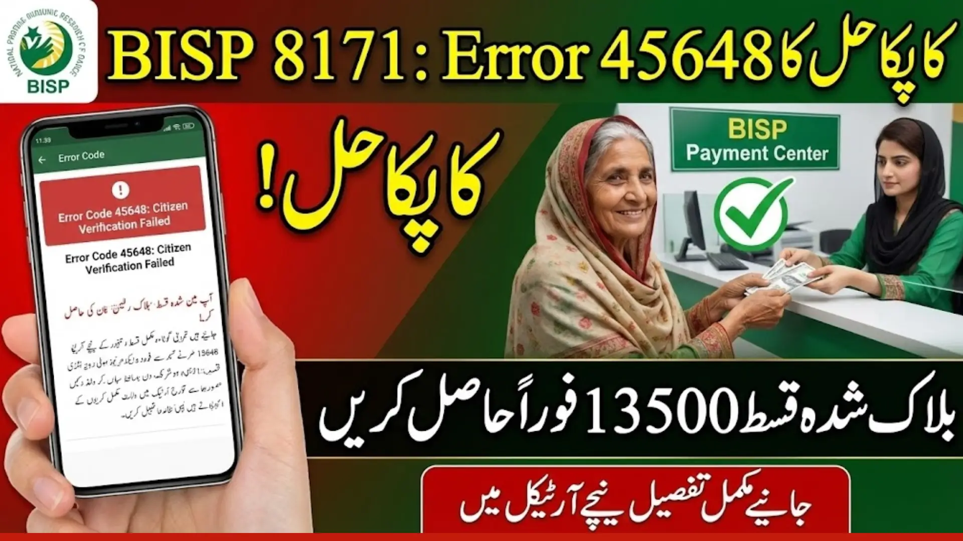 Resolve BISP 8171 Error Code 45648: BISP 8171 is one of Pakistan’s most important social welfare programs, providing financial assistance to low-income families, widows, and elderly women. Millions of beneficiaries rely on BISP to meet basic needs, such as food, education, and healthcare. The quarterly BISP Qist system ensures timely support, but sometimes beneficiaries face issues during verification. One of the most common problems is Error Code 45648, which appears during citizen verification and can temporarily block payment access. (Source: bisp.gov.pk)