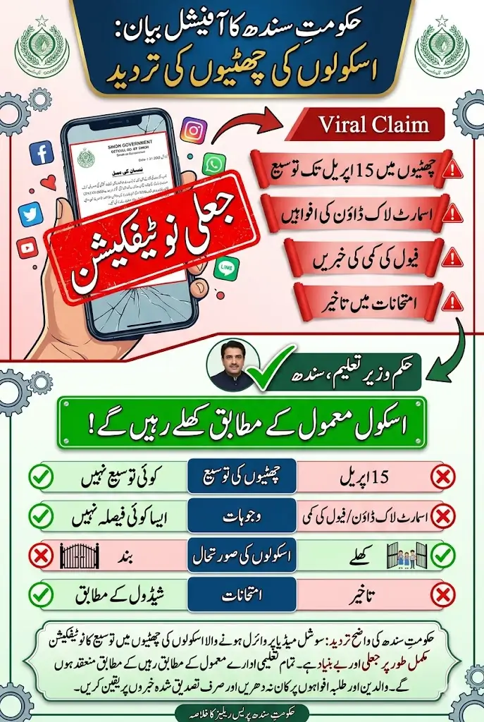 In response to the growing confusion, Sindh Education Minister Syed Sardar Shah clearly stated that the notification is fake and misleading. He emphasized that no such decision has been taken by the government and urged people to avoid sharing unverified information.