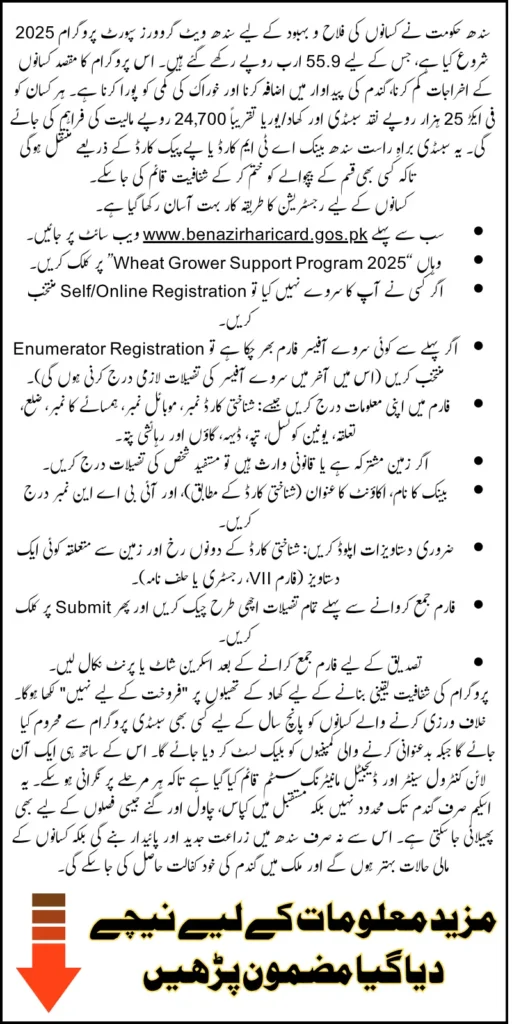 The Sindh Wheat Growers Support Programme 2025 has introduced a modern system to ensure fair distribution and complete transparency. Farmers will directly benefit without middlemen or delays.