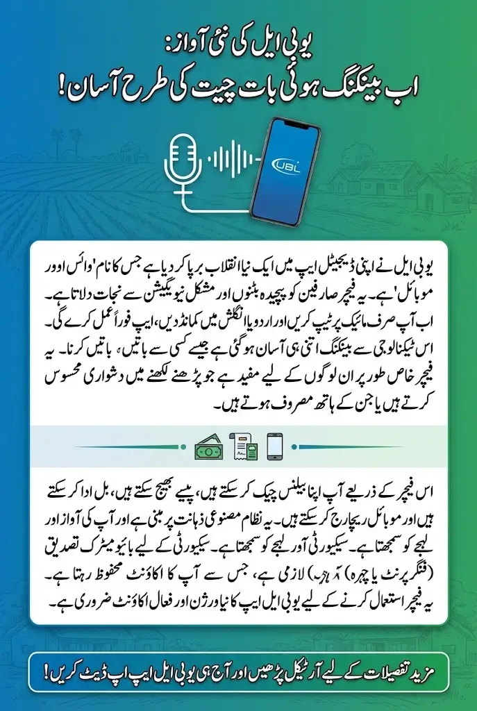 UBL’s Voice-Over-Mobile system is a major step forward in making digital banking easier, faster, and more accessible for all types of users. With natural voice commands, simple setup, and strong security, the feature makes everyday banking effortless. It also empowers users who may find traditional digital banking tools difficult.